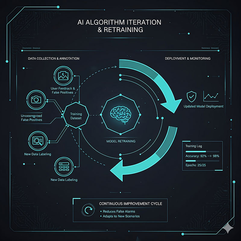 用户可以在系统实际运行中收集误报或漏报数据,通过与我们的技术团队联系,将这些数据反馈给AI模型进行重新训练和学习。